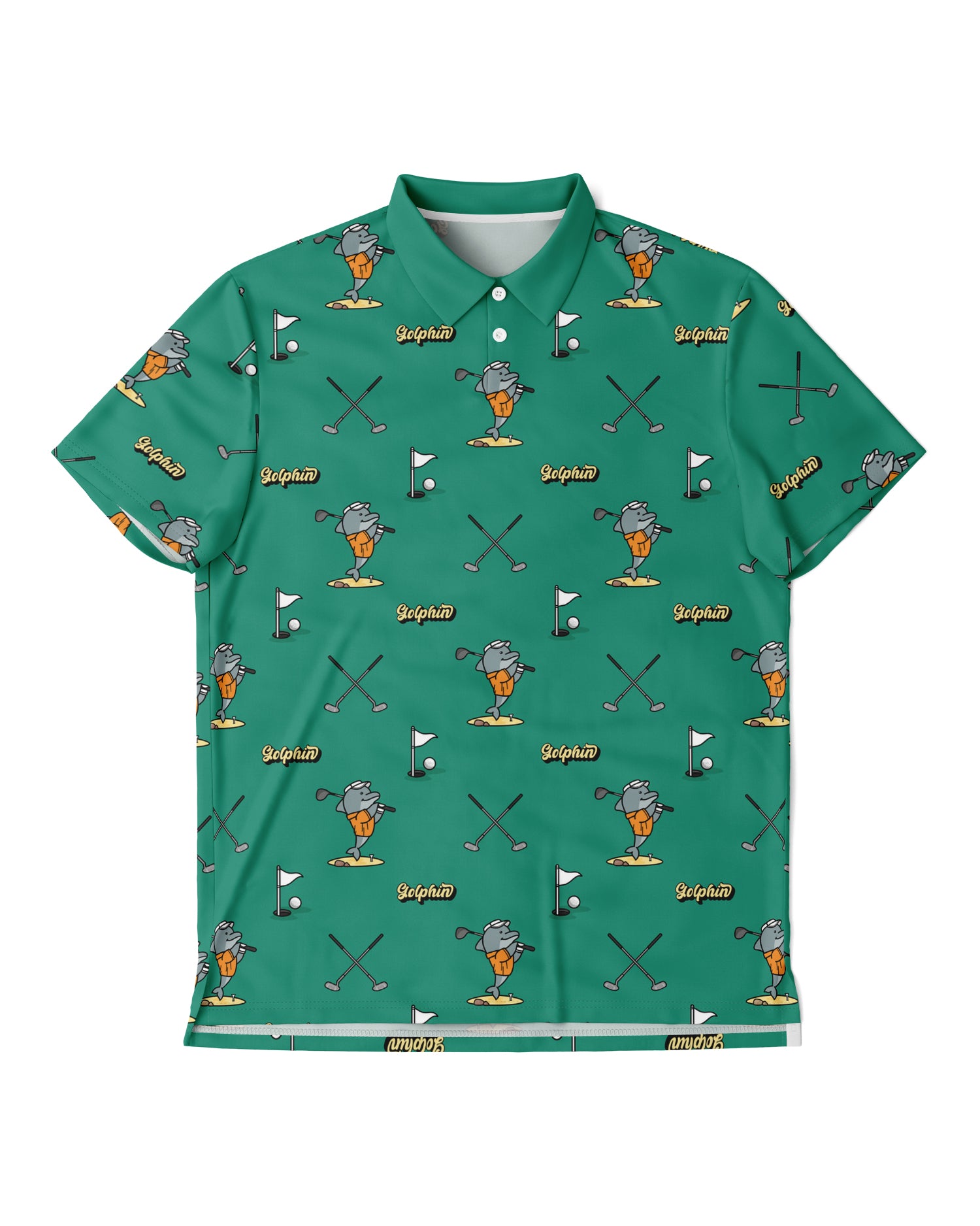 Golphin Player 008 all-over print sport polo with dolphin golf pattern design front view